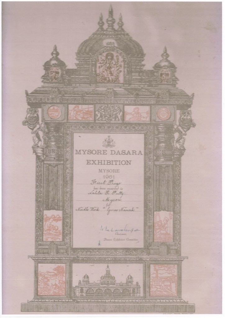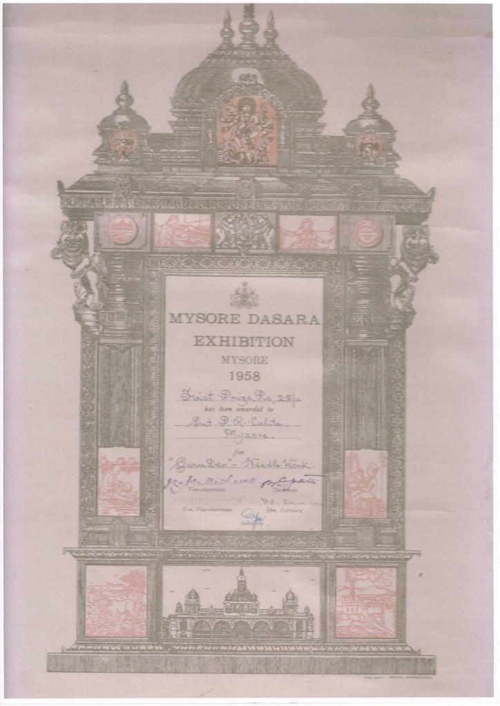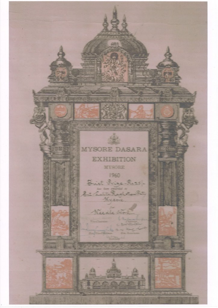 - First Prize at the Mysore Dasara Exhibition for seven consecutive years
