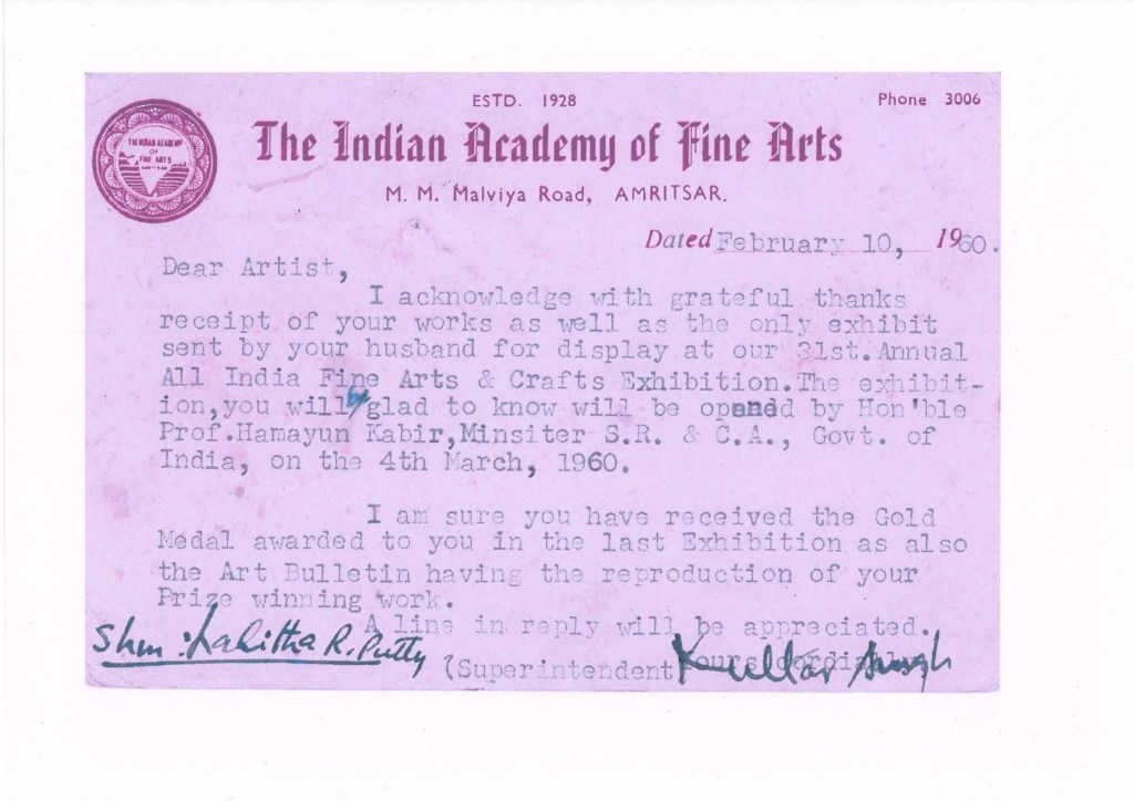 - Silver and Gold Medals at the Indian Academy of Fine Arts, Amritsar